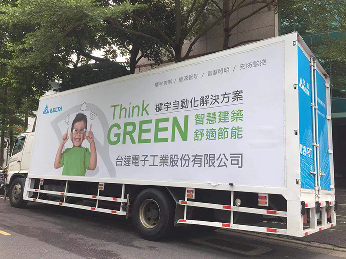 充满活力的台达楼宇自动化解决方案彩绘车已于7/18正式上路! 未来将可从高速公路及市区马路上,随时可见到台达智能楼宇自动化彩绘车的精采身影。广告设计概念以「Think Smart Think Green」出发,透过活泼生动且吸睛的方式,强调以人为本的台达楼宇自动化解决方案,可打造舒适、安全、有效率的智慧建筑。