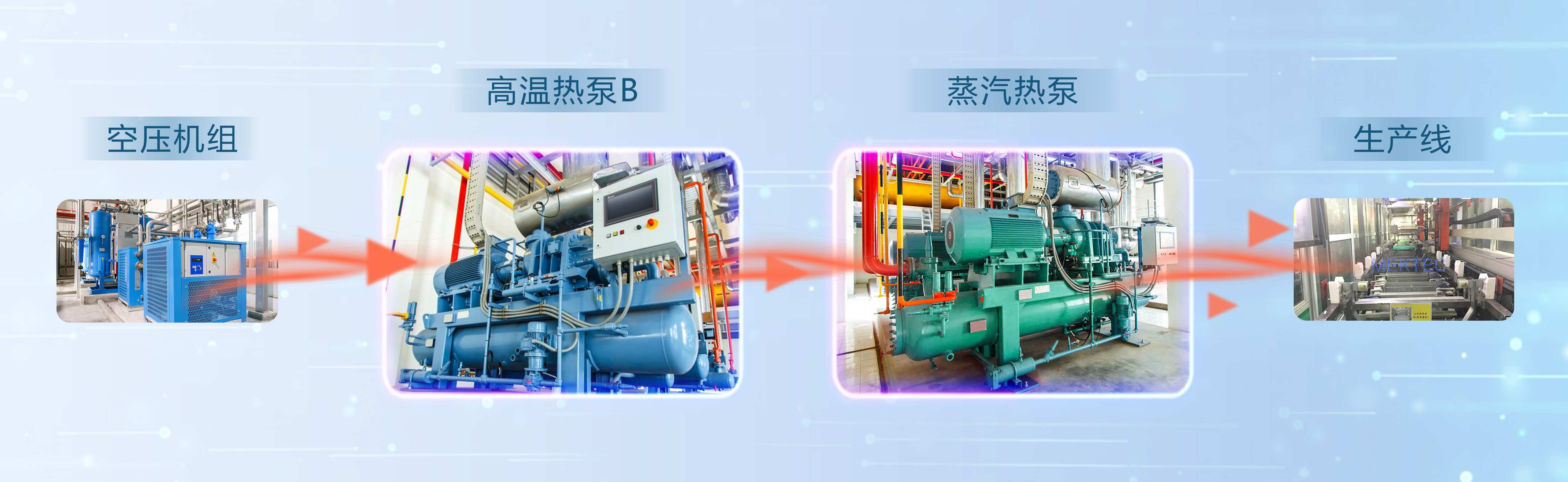 增设高温热泵B和蒸汽热泵,将空压机组余热分次提温至140℃供产线使用。