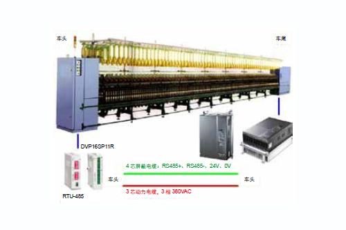 借助台达机电产品强大的网络整合能力,构建细纱车间监控网络实现单台细纱机运行状况、产量统计、故障监控、工艺参数设定等功能。