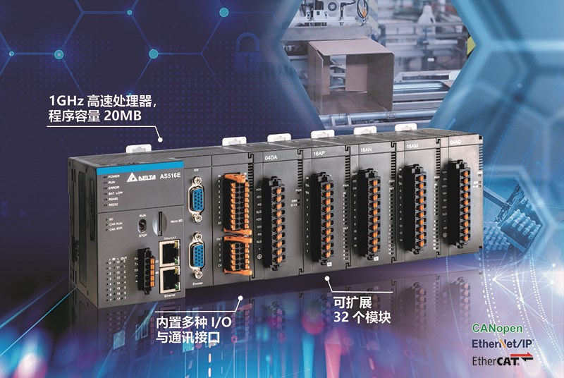 AS500系列是台达专为自动化设备开发的高阶运动控制器,具有强劲的运作性能和丰富的运动指令等高阶能力。产品延续AS系列运动控制器高效率、高性能等特点,搭载1GHz高速处理器,支持64位浮点数(LREAL)数据类型的运算;Ethernet/IP、EtherCAT双通讯网口的设计,标准运动指令库(如单轴指令、多轴指令、轴组指令等),可满足各种复杂工艺需求,操作方便、易于上手,可帮助用户构建高阶运动控制方案,满足各种复杂工艺需求。
