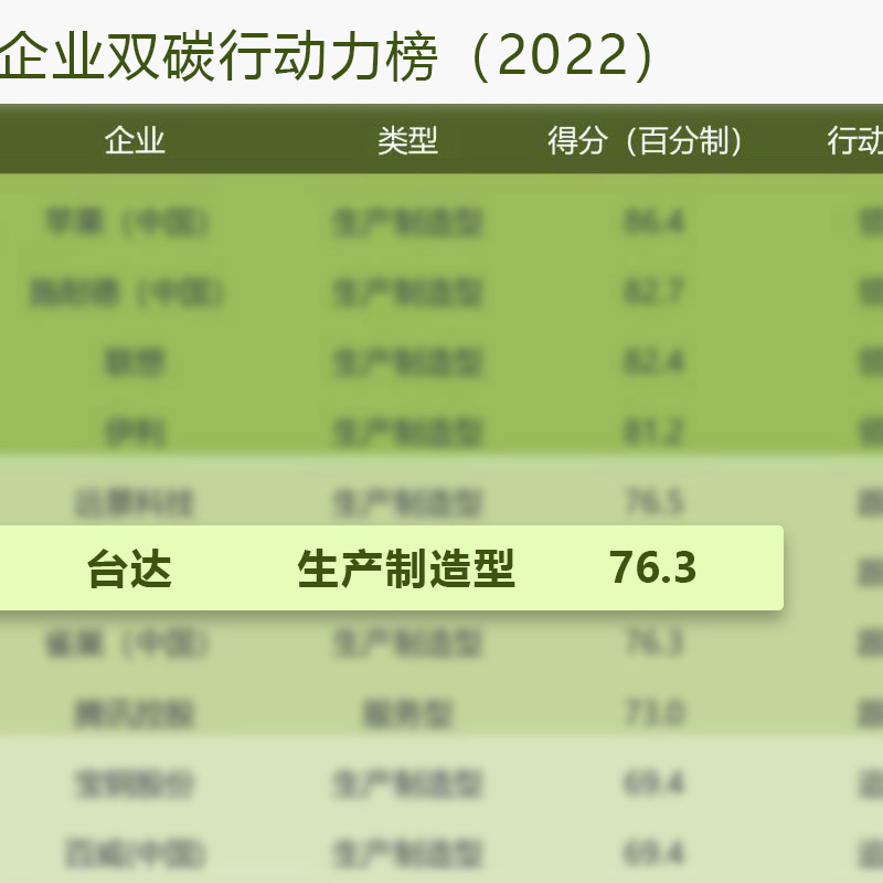 台达入选《中国企业双碳行动力榜》十强 引领“碳”路 奔向净零