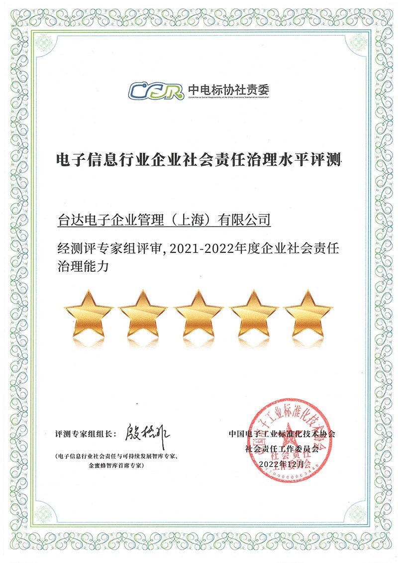 台达企业社会责任治理水平获中电标协五星级“卓越”评价 推动电子信息产业低碳可持续发展
