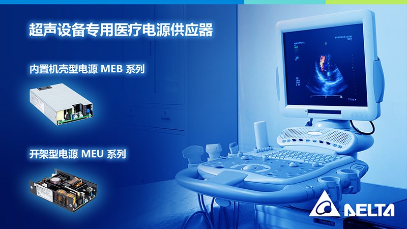 超声设备:普遍使用于医疗上,用于诊断人体内器官及组织的病变,尤其在妇产领域,常需要进行实时的检测,对供电稳定度、低噪音运行要求高。针对设备需求,台达提供开架型电源MEU系列和内置机壳型电源MEB系列两款电源供应器。开架型电源MEU系列可提供650 W输出电源,效率高逹96%,可选择自然对流或强制通风;全系列配置5 V辅助电源及12 V 风扇电源,并支持PMBus通讯协议,实现智能控制。内置机壳型电源MEB系列配置5 V / 12 V辅助电源以及并联均流功能,亦支持PMBus通讯协议。两款电源产品皆可满足超声设备的供电需求,另有低功率开架型电源MEP系列的,亦可应用在BF型患者可接触的医疗仪器如呼吸麻醉设备上。