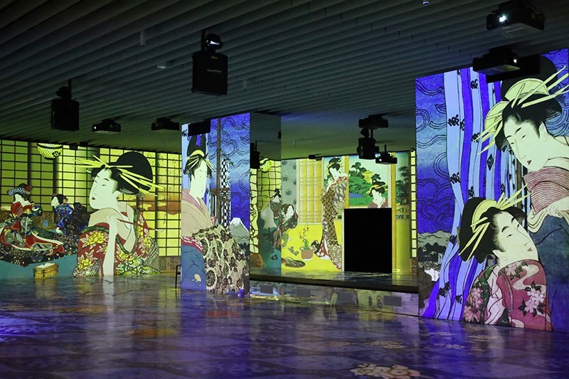 “来自巴黎的浮世绘剧场”展览于2021年10月30日至2022年4月10日在日本东京的角川武蔵野美术馆一楼大画廊举办。超过 30 台Digital Projection E-Vision 10000的高级激光投影仪在 1000平方米的区域内,通过360度全景投影呈现法国数字艺术创作团队Danny Rose Studio的作品,将日本传统及当代浮世绘艺术以12 个不同场景呈现出来,画面生动有力,具有出色的亮度、清晰度和色彩还原度。台达的视讯解决方案已在日本市场耕耘超过 20 年,近期成功案例包括东京森美术馆选用台达8K投影技术,展示人工智能的视觉艺术,以及日本公共媒体机构所属的全国性电视台选用台达8K投影技术转播世界级体育赛事、文化艺术表演等。