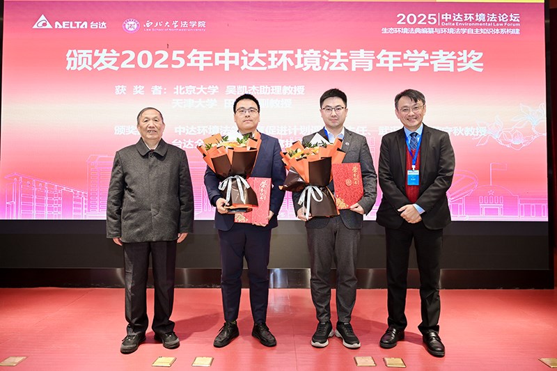 由台达集团主办,西北大学法学院承办的“2025 中达环境法论坛” 近日在西安成功举办。会议邀请了三十余位专家学者以及青年学生进行专题报告,两百多位从事环境法学科研究的高校师生齐聚古城,围绕“生态环境法典编纂与环境法学自主知识体系构建”主题展开深度研讨,为环境法学科发展提供新思路。会议中也为获得2025年“中达环境法学者”荣誉称号的北京林业大学杨朝霞教授、2025年“中达环境法青年学者奖”的北京大学吴凯杰助理教授和天津大学田亦尧教授,以及获得2025年“中达环境法优秀学位论文奖”的18位高校博硕士研究生代表颁奖。
