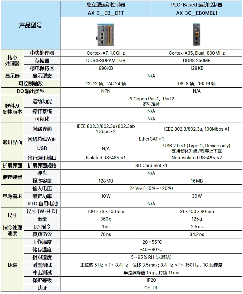 AX-3C 是 AX系列家族中入门级的运动控制器,采用CODESYS开发平台,提供高效率与便捷的开发环境,以优于同级产品的执行性能,提供客户绝佳的产品使用体验。
