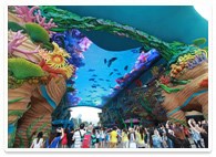 白鲸馆和海豚馆,采用了台达LED显示单元分别打造了面积为460.8㎡和60.83㎡的室内弧形LED大屏,考虑到屏体处于场馆内的海水环境,屏面进行特殊设计以防腐防盐雾。