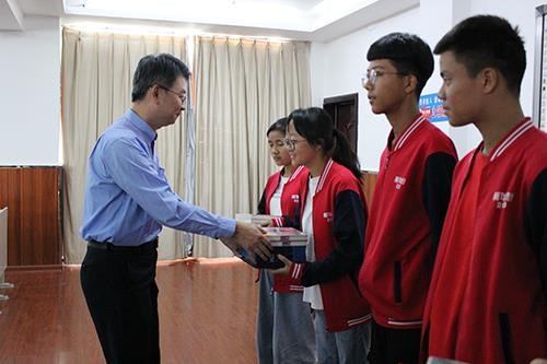 台达郴州厂区厂长李朝钟先生第三度受邀前往湖南益阳一中,在开班典礼上代表台达现场为珍珠班捐赠了50本励志书籍,并对受助学生提出了三点要求:一、珍惜现有机会努力战胜自己;二、自强不惜通过知识改变命运;三、要懂得奉献,希望在爱的路上把爱传承下去。最后,郴州厂区员工志愿者廖梦洁也带领新一届的珍珠生通过团建活动,拉近彼此距离,加强学生之间的沟通与交流,提高了班级的凝聚力。
