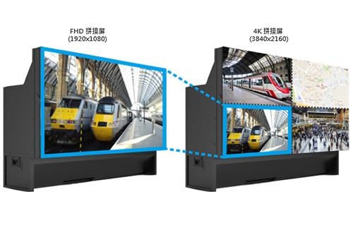 2) 4K显示单元单屏内可同时显示4个FHD高清信号,仍可保留原信号FHD分辨率;